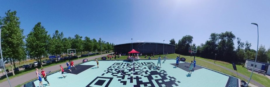 Het is drukker dan ooit op Basketbalveld Heerenveen, want dit is de plek waar de Friese 3X3 community samenkomt! Op het oppervlak van de baan zie je een QR-code. Hiermee kom je op de website van Unites, waar je informatie kunt vinden over 3X3 en alle activiteiten in Friesland.