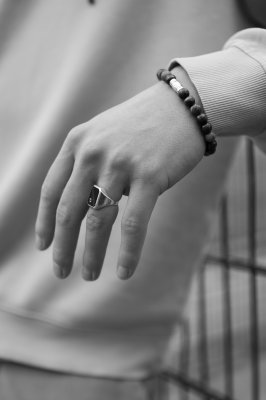 I wear two pieces of jewelry. I received a signet ring from my father and a bracelet from my sister. The jewelry symbolizes the close bond I have with my family. When I look at them, I think of them and feel happy. My family means a lot to me.